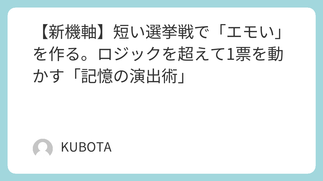 【新機軸】短い選挙戦で「エモい」を作る。ロジックを超えて1票を動かす「記憶の演出術」