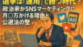こうした短く、リズムの良い言葉(バイラル・コピー)は、有権者の記憶の隅に残り続け、投票用紙を前にした瞬間にふと思い出されます。どんなに高尚な政策も、一言で説明できなければ伝わっていないのと同じです。