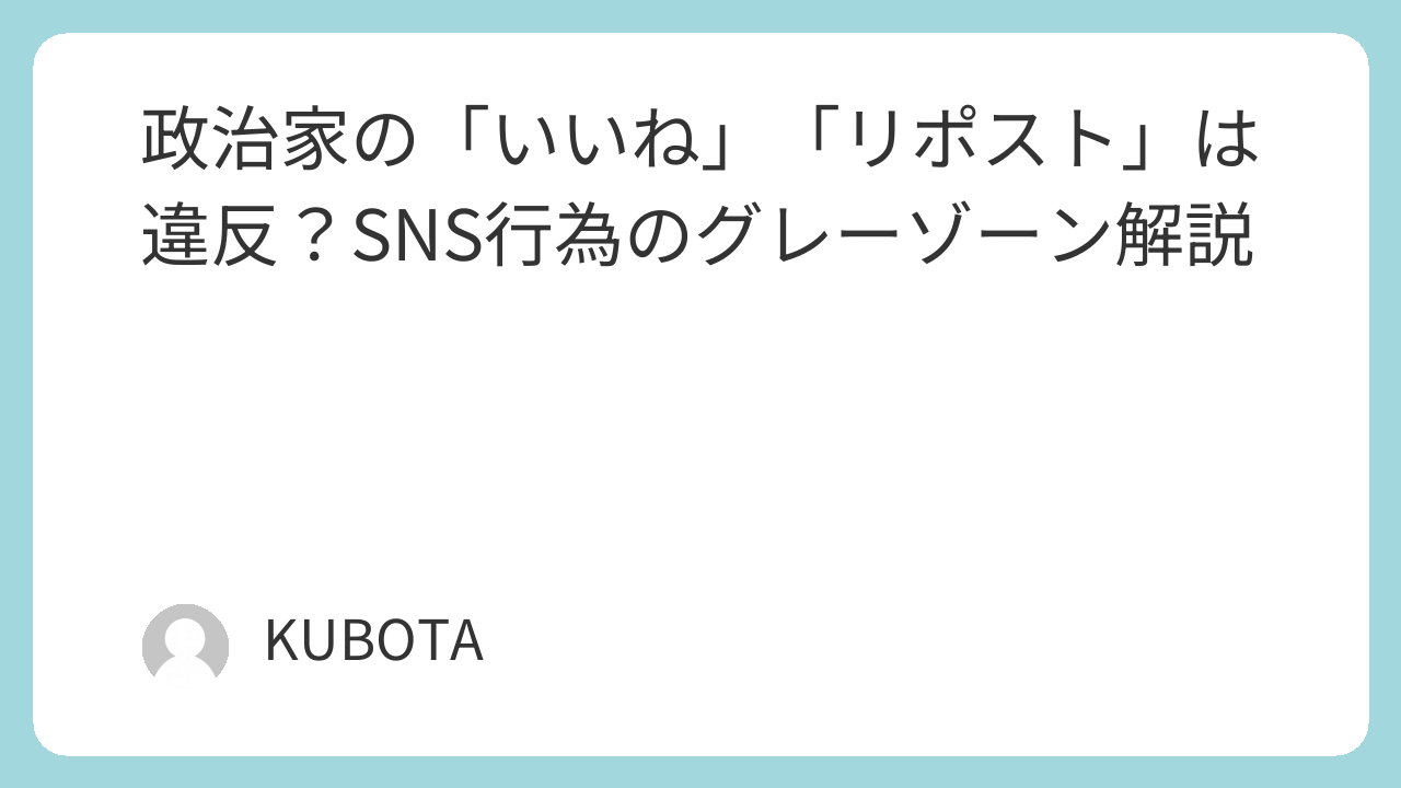 選挙期間中や日常の政治活動において、SNSは欠かせないツールです。しかし、何気なく行った「いいね」や「リポスト」が、公職選挙法に抵触する可能性があることをご存知でしょうか。今回は、政治家が知っておくべきSNS運用の「グレーゾーン」と、トラブ...