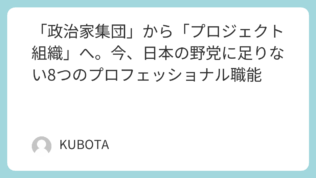 記事 「政治家集団」から「プロジェクト組織」へ。今、日本の野党に足りない8つのプロフェッショナル職能