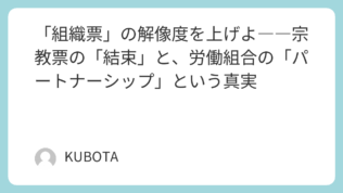 選挙 「組織票」の解像度を上げよ――宗教票の「結束」と、労働組合の「パートナーシップ」という真実 はじめに:なぜ「組織票」という言葉は思考停止を招くのか?政治の議論において、「組織票」という言葉はあまりにも万能なマジックワードとして使われすぎています。SNSや動画プラットフォームでの政治解説を見渡せば、「あの党には強固な組織票があるから... 2026.02.03 選挙