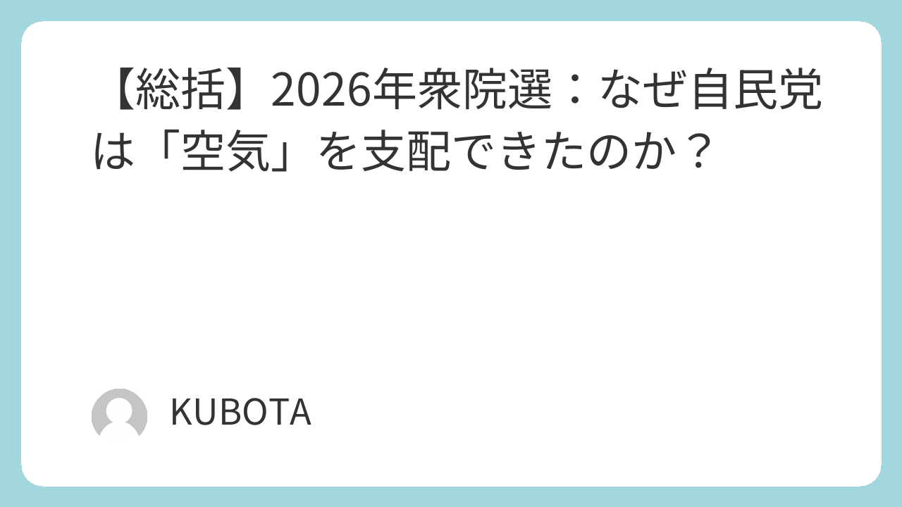 - 政策のバックエンド軽視: 期間限定の消費税減税など、実現性に疑問が残る公約も、「高市ならやってくれそう」というフロントエンドの印象でカバーされ、バックエンドの検証(予算の裏付け等)は完全にスルーされました。