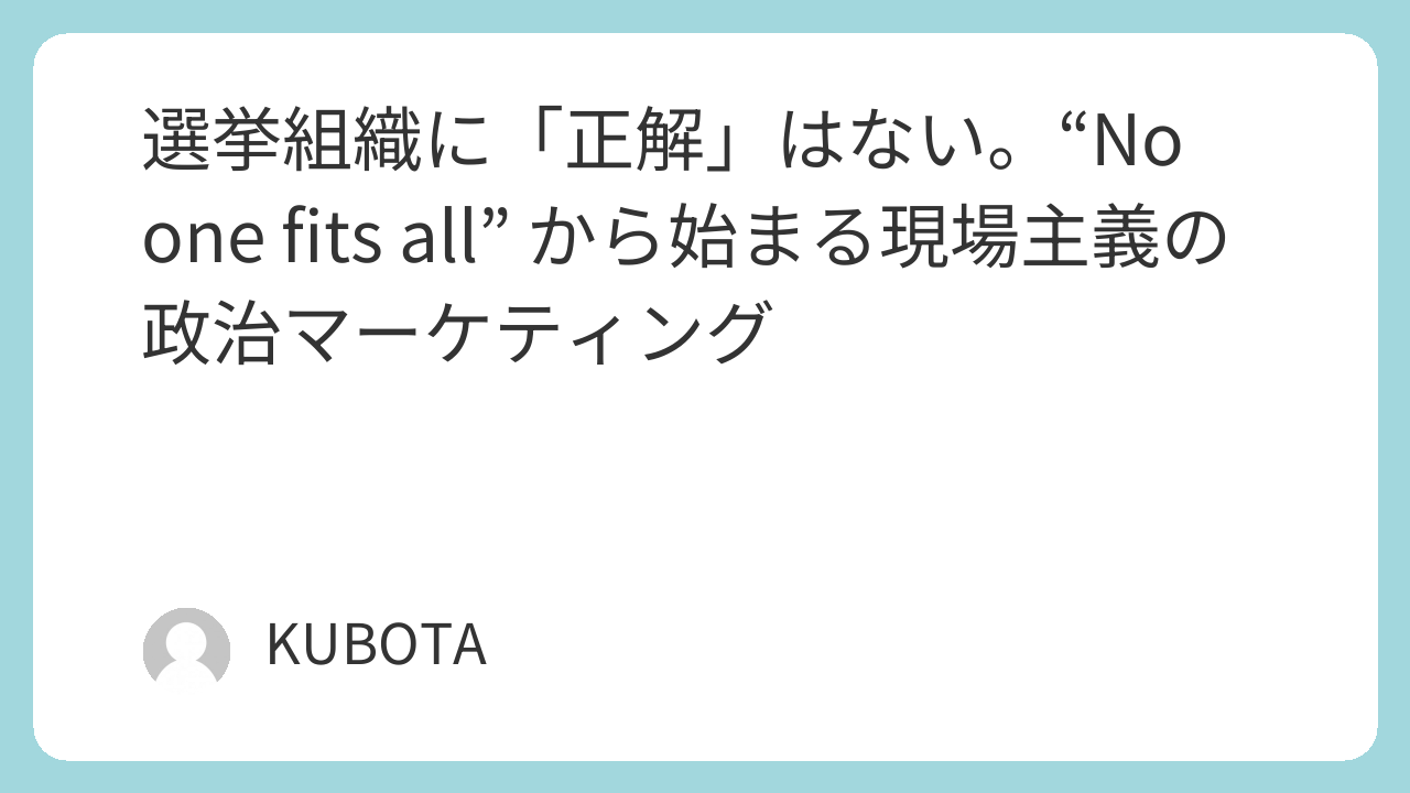 選挙組織に「正解」はない。“No one fits all” から始まる現場主義の政治マーケティング